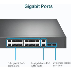 TP-Link switch de montaje en bastidor Gigabit de 18 puertos con 16 puertos PoE +