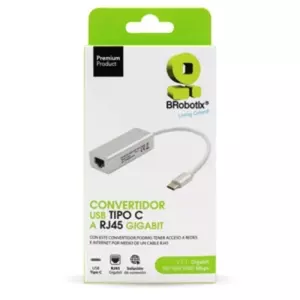 BROBOTIX CONVERTIDOR USB TIPO C A RJ45 GIGABIT V3.0 COLOR BLANCO - Adaptador Tarjeta de Red Externa Gigabit 10/100/1000 UTP - 1 Conector USB Tipo C Macho a RJ45 Gigabit Hembra - USB Version 3.0