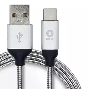 El BRobotix Cable USB-C Macho - USB Macho, de 1 metro de longitud, presenta un diseño elegante en color plata. Este cable cuenta con un conector USB-C macho en un extremo y un conector USB A macho en el otro, ambos con un factor de forma derecho.
