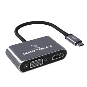 Perfect Choice Adaptador USB C Macho - HDM1/VGA Hembra, Plata/Negro