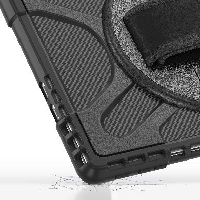 Incorpora una pulsera para facilitar su transporte. El peso de la funda es de 351 g, lo que la hace ligera y fácil de manejar. No cuenta con altavoces incorporados ni batería, lo que la convierte en una opción sencilla y funcional para la protección del dispositivo. Además, tiene la capacidad de entrar en modo espera, lo que contribuye a la eficiencia del uso del dispositivo.