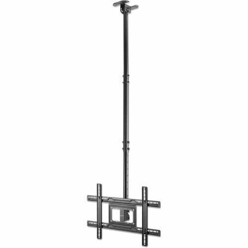 Este soporte de techo es compatible con una sola pantalla y tiene una capacidad máxima de peso de 50 kg. Con su gestión de cables integrada, podrás mantener tus cables organizados y sin enredos. Además, cuenta con la opción de giro para ajustar la posición de la pantalla según tus necesidades.