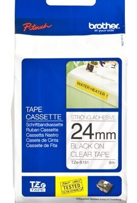 Cinta Brother TZES151 Negro sobre Transparente, 2.4cmx 8m